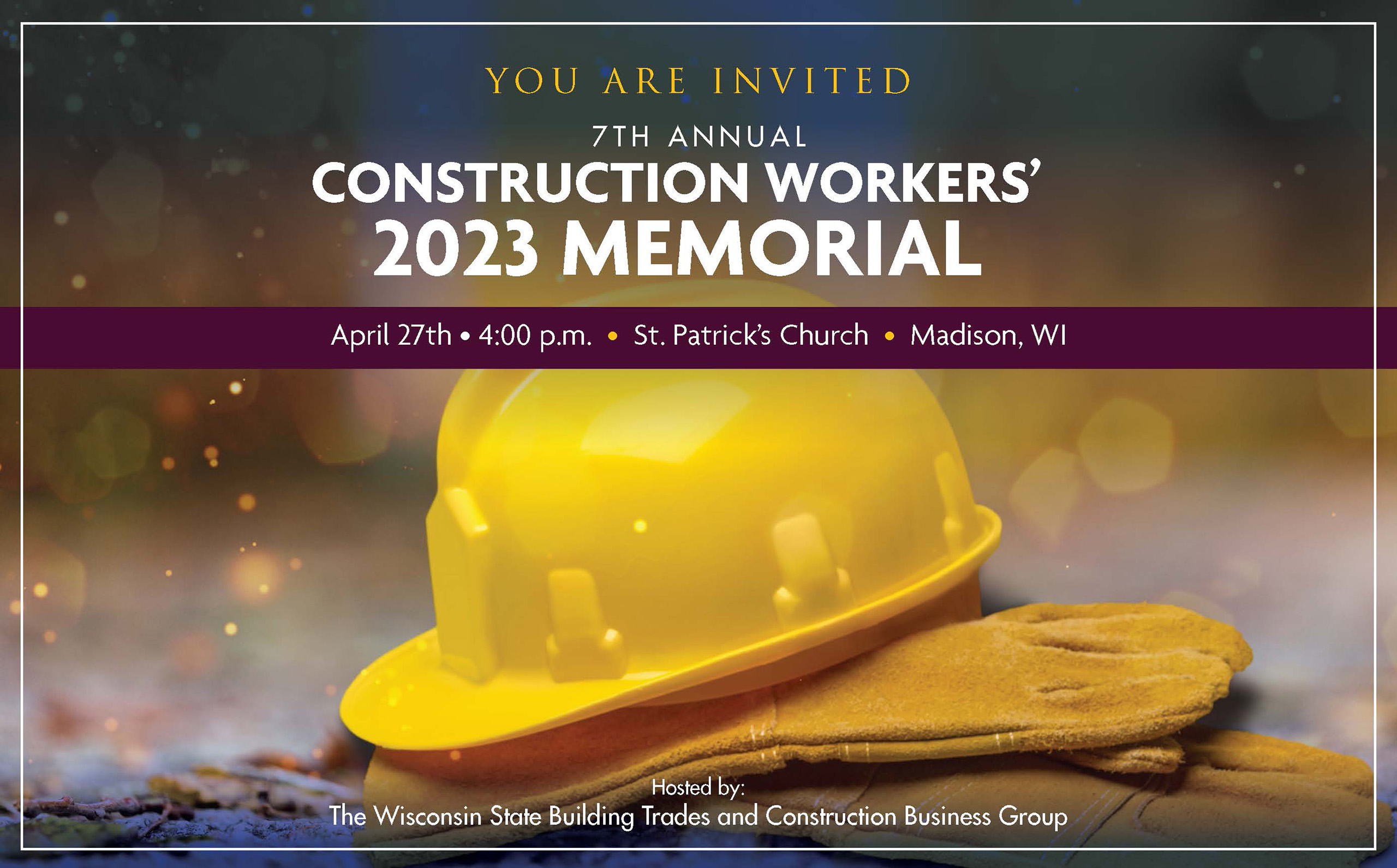 Workers’ Memorial Day is an international day of remembrance of workers killed by workplace incidents or diseases caused by work. A special 7th Annual Construction Workers’ Memorial Service hosted by the Wisconsin State Building Trades and Construction Business Group will honor those who lost their lives in construction accidents in Wisconsin.