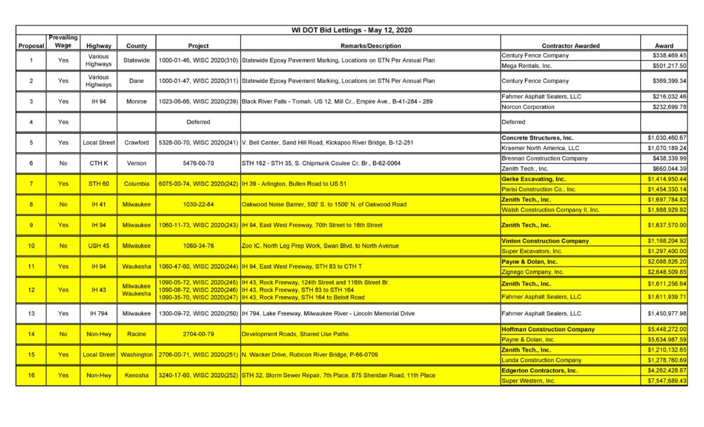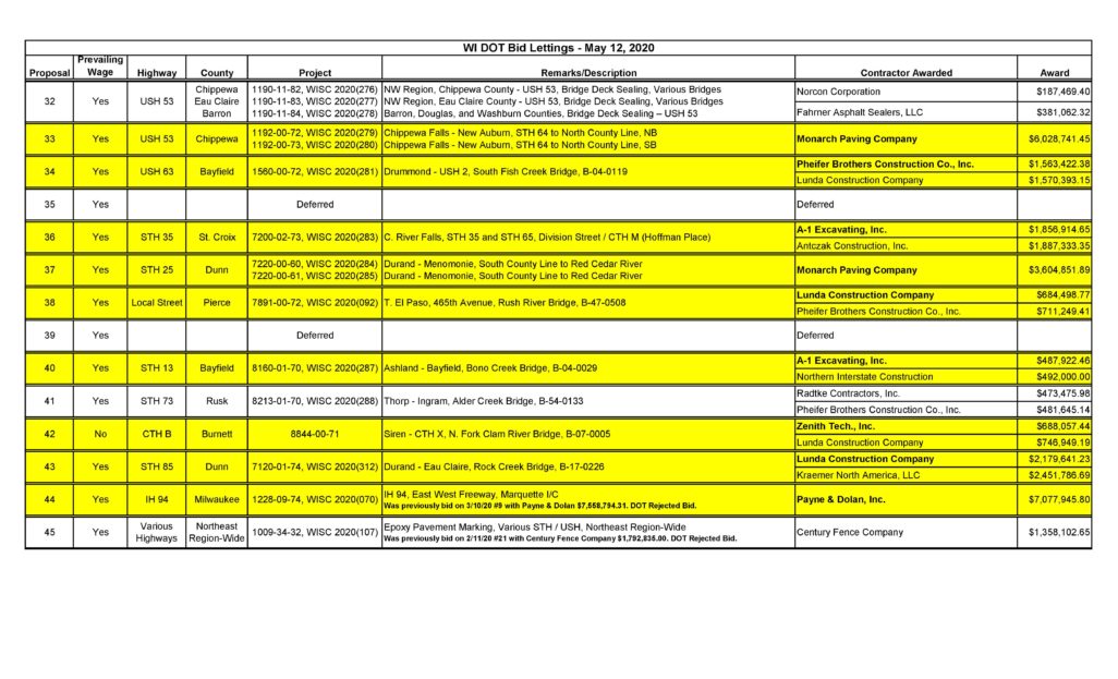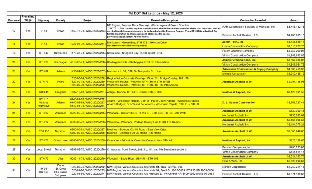 WI DOT Bid Lettings – May 12, 2020 Posted on May 12, 2020 by Becky Laumann - DOT Bid Lettings, Member News, News, Projects, Transportation To Download PDF:DOT-Bid-Lettings-5.12.2020Download