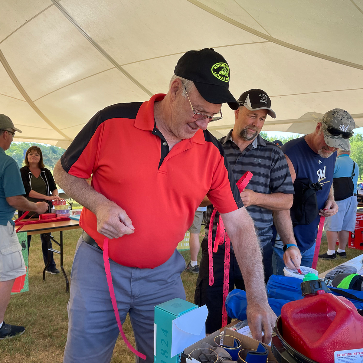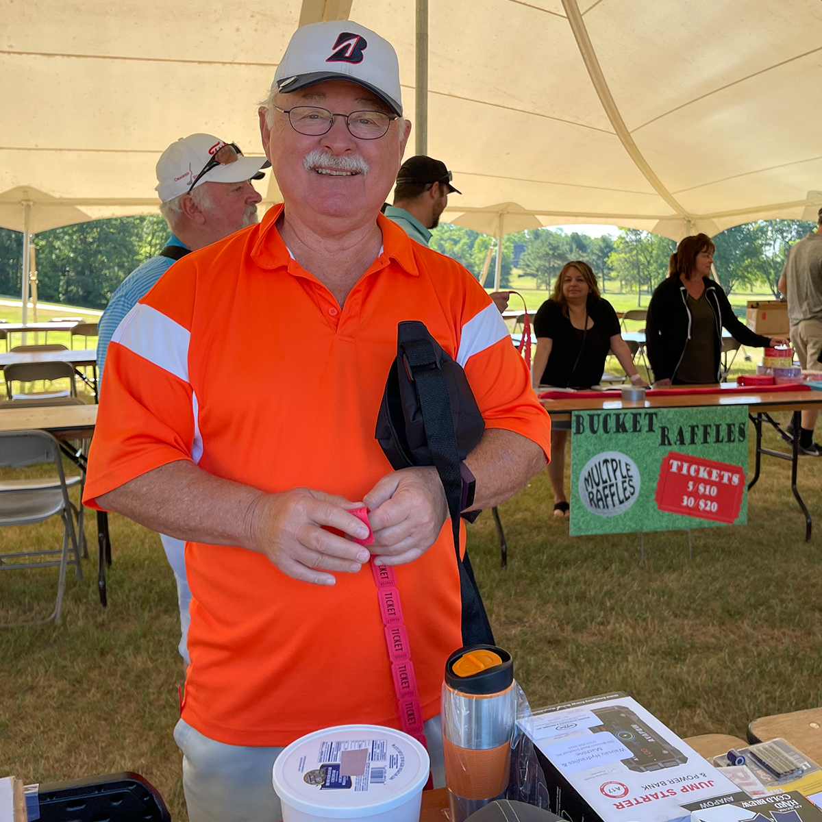 Dave Haertl adds a ticket to a bucket for his chance to win a prize.