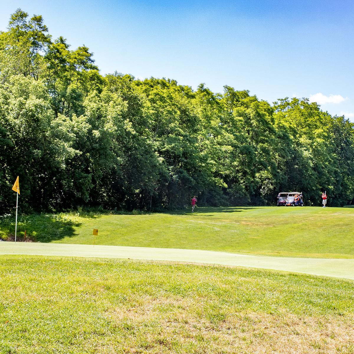 Kevin and Audra Thompson with Hogs for Heroes on Hole 5.