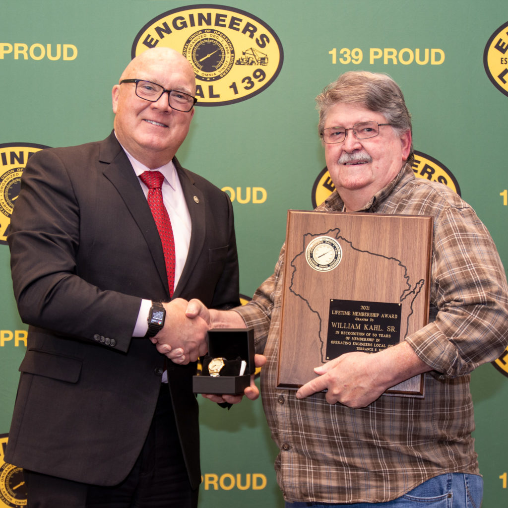 50-year member William Kahl, Sr. pictured with President/Business Manager Terry McGowan