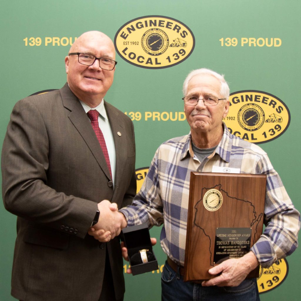50-year member Tom Handschke pictured with President/Business Manager Terry McGowan