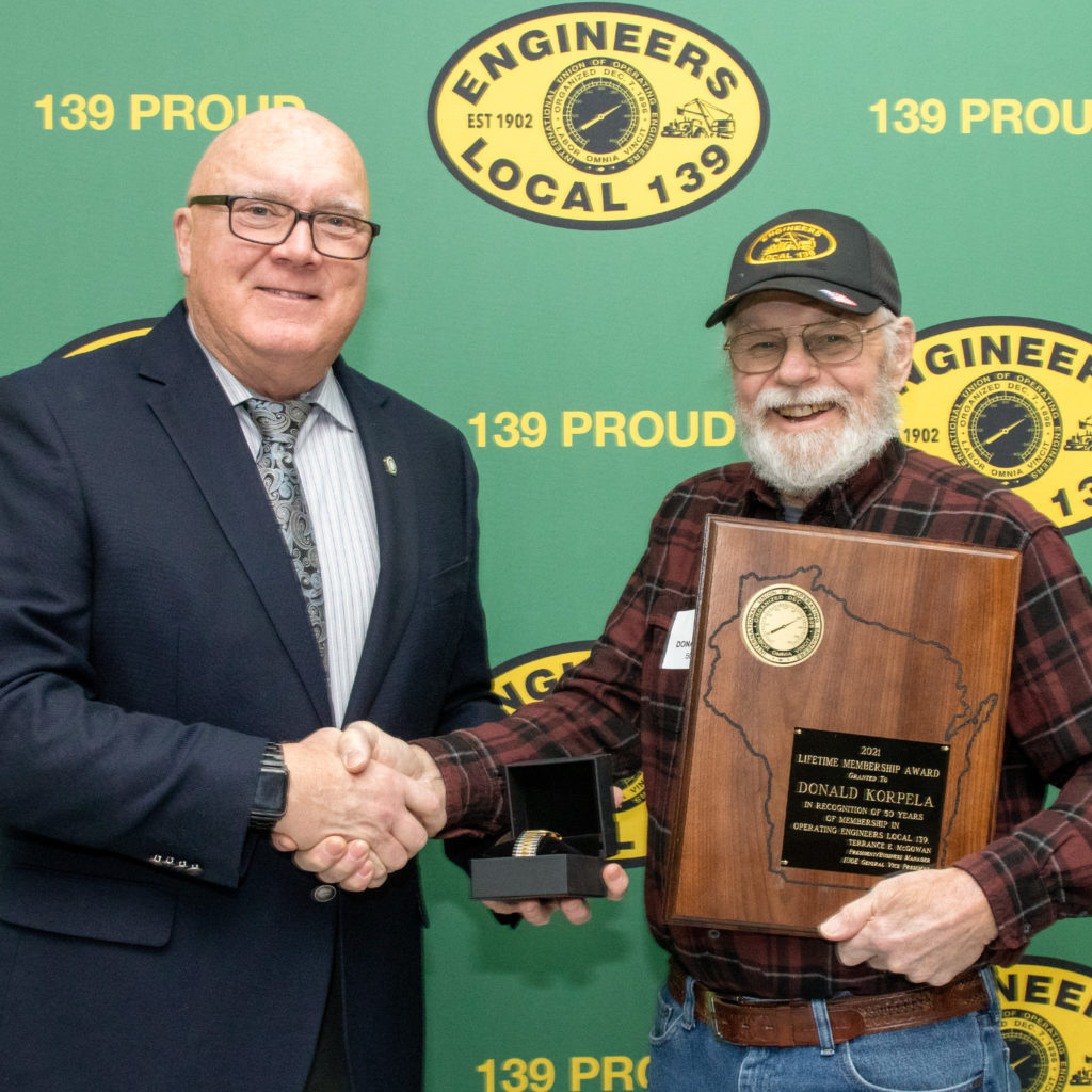 50-year member Donald Korpela pictured with President/Business Manager Terry McGowan