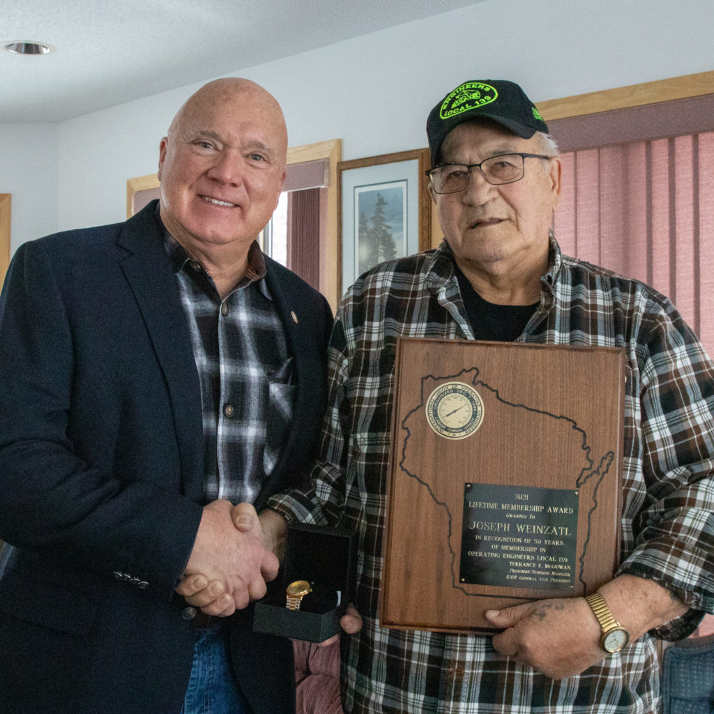 50-year member Joseph Weinzatl pictured with President/Business Manager Terry McGowan