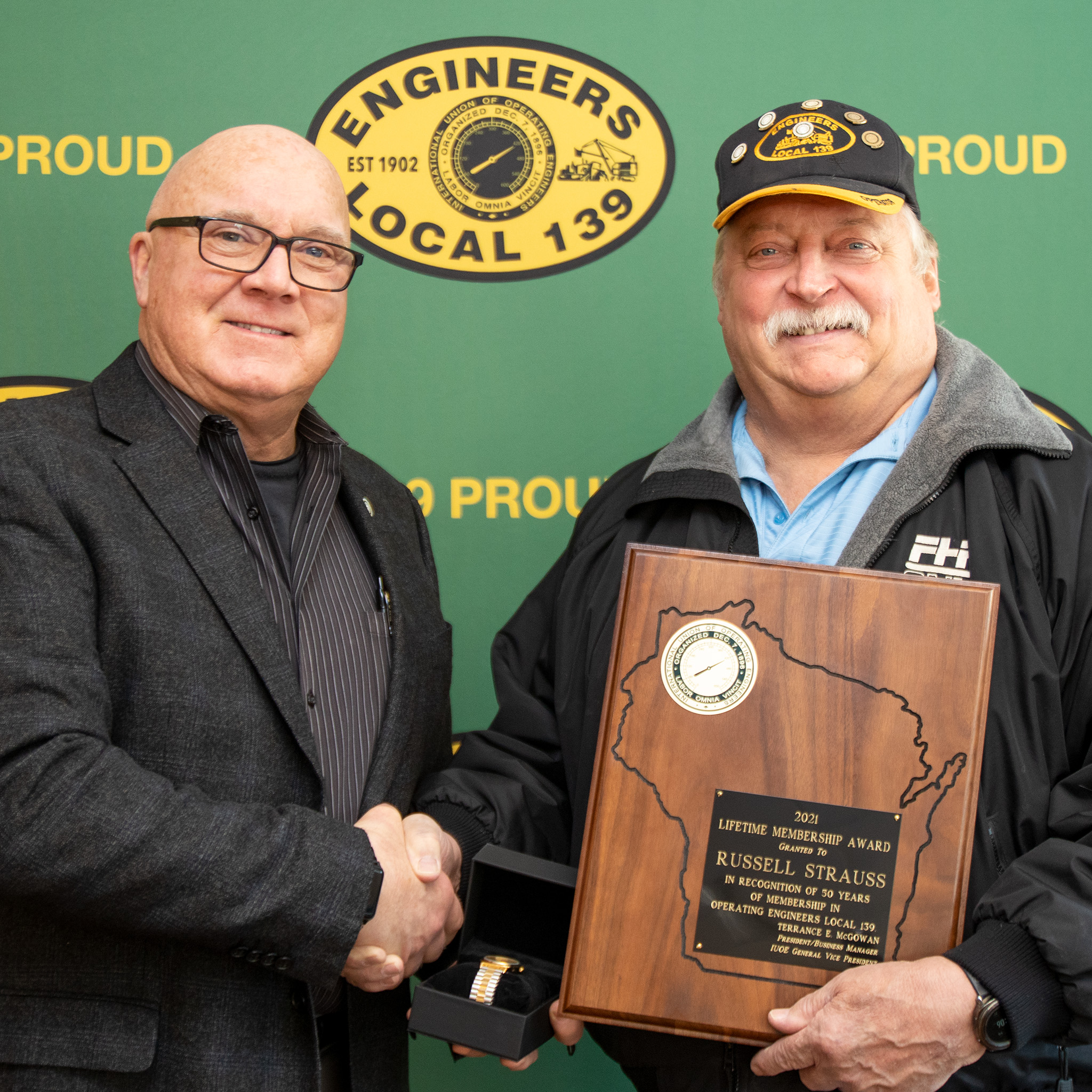 50-year member Russell Strauss pictured with President/Business Manager Terry McGowan