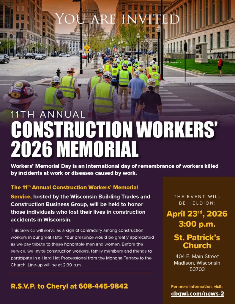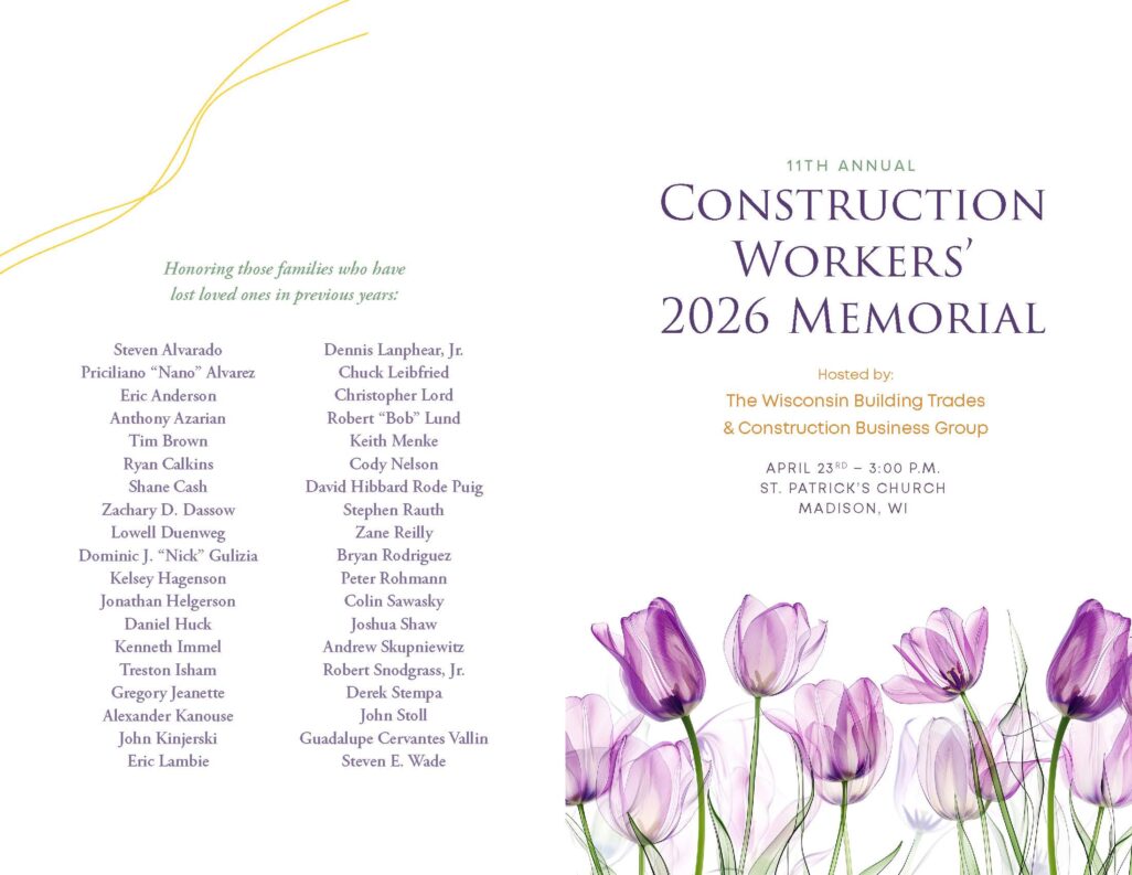 Service, hosted by the Wisconsin Building Trades and Construction Business Group, will be held to honor those individuals who lost their lives in construction accidents in Wisconsin.